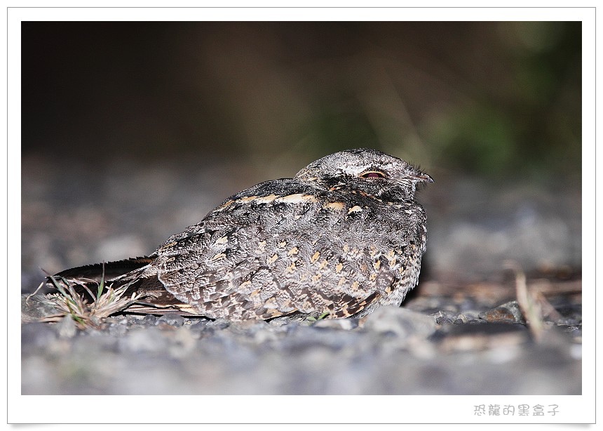 其實這次來最哈的夜間觀察目標當然是夜鷹囉,第一天傍晚進入林道前就在河邊空地驚飛起兩隻,牠們竟然就大剌剌地窩在路上,一副老神在在的樣子。不過大家都太興奮了,所以她害羞飛走了。